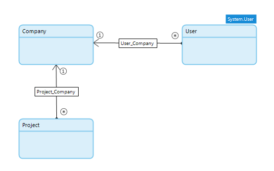 Assume you have the entities Company, User and Project and associations like in the datamodel below. All users within the company can access all projects of that same company.