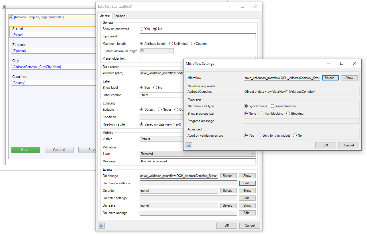 When we move the before-commit validation approach to a save microflow then we can validate the data before committing it. Messages can be shown to a user, no issue with the three layered approach and you can adjust data before committing it; for example transform the email address in an attribute to lowercase (can be put in a before-commit microflow too, is probably even better for this example).